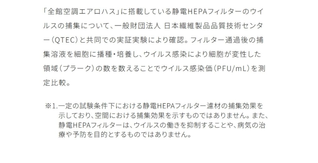Panasonic Homesの全館空調システムに搭載している専用静電HEPAフィルターは新型コロナウイルス・インフルエンザウイルスの補修率が99.98%以上であることが確認されました!