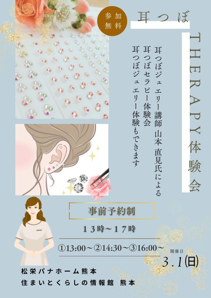 【耳つぼセラピー体験会💎】3月1日(日) 住まいとくらしの情報館熊本