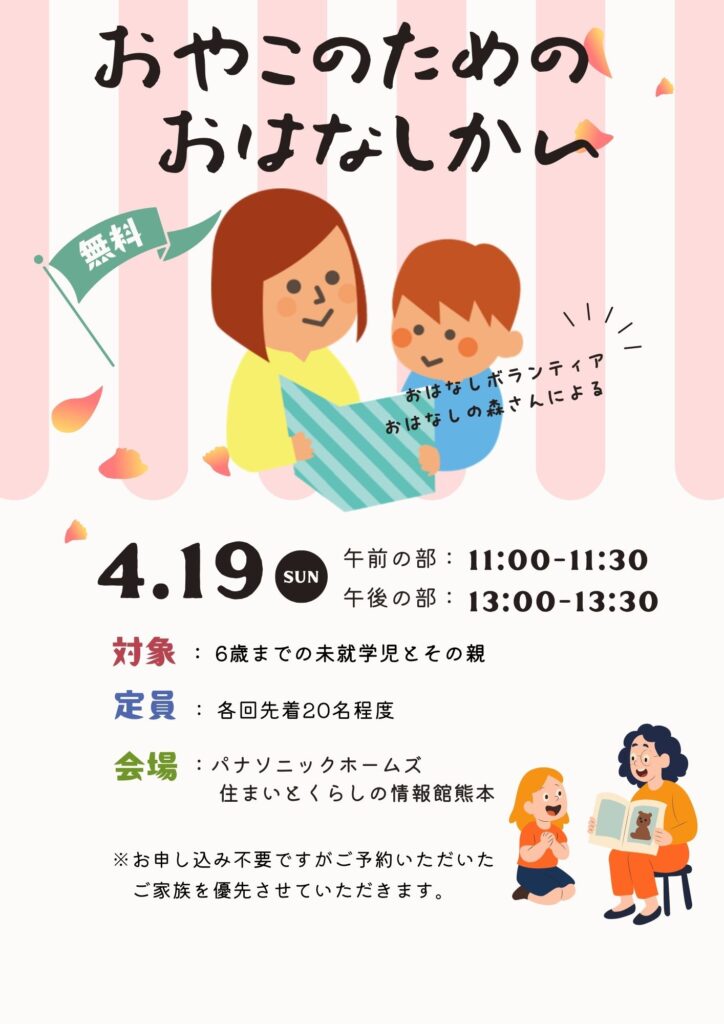 【おやこのためのおはなしかい・ファミリーフォト撮影会】4/19㊐ 住まいとくらしの情報館 熊本